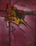 2009schildering van gemengede technieken op canvas met houten lijst